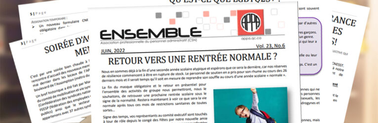Retour vers une rentrée normale? | Qu’est-ce que LGBTQ2S+? | Soirée d’accueil des nouveaux membres de l’APPA | Pour maintenir nos primes d’assurance à un coût raisonnable, faisons les réclamations aux bons endroits! | Projet de loi 59 devenu loi 27 à l’adoption | Quelques trucs pour augmenter la reconnaissance au travail